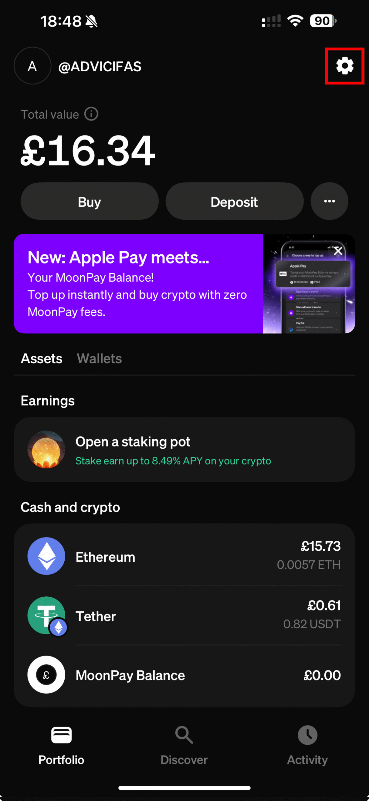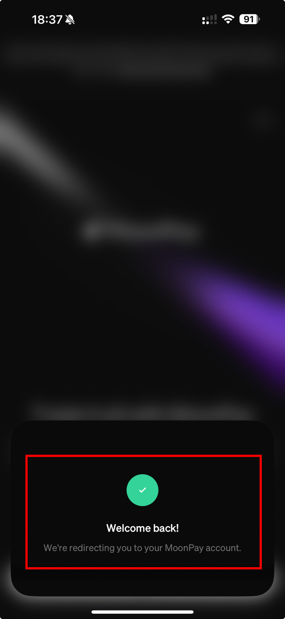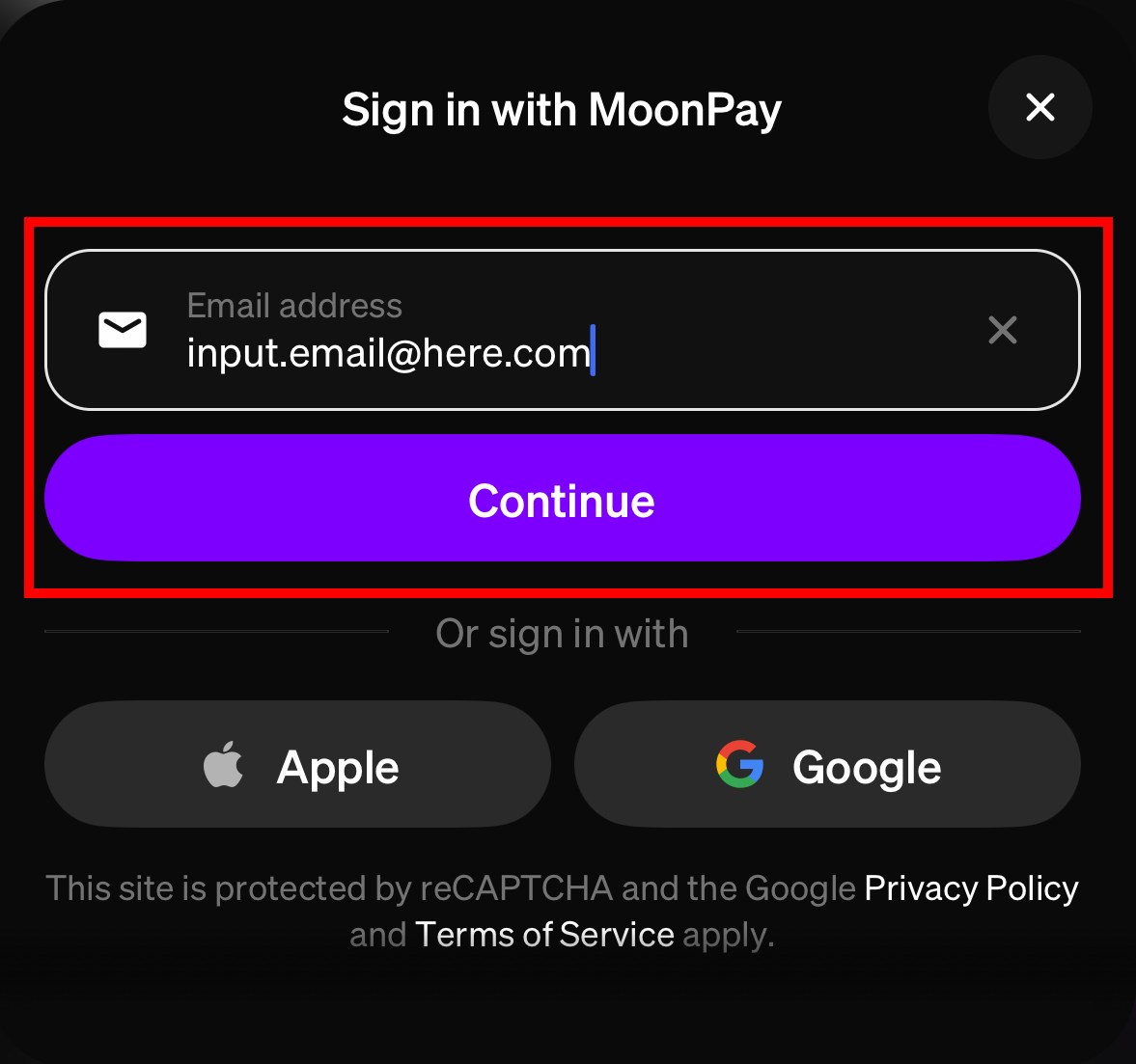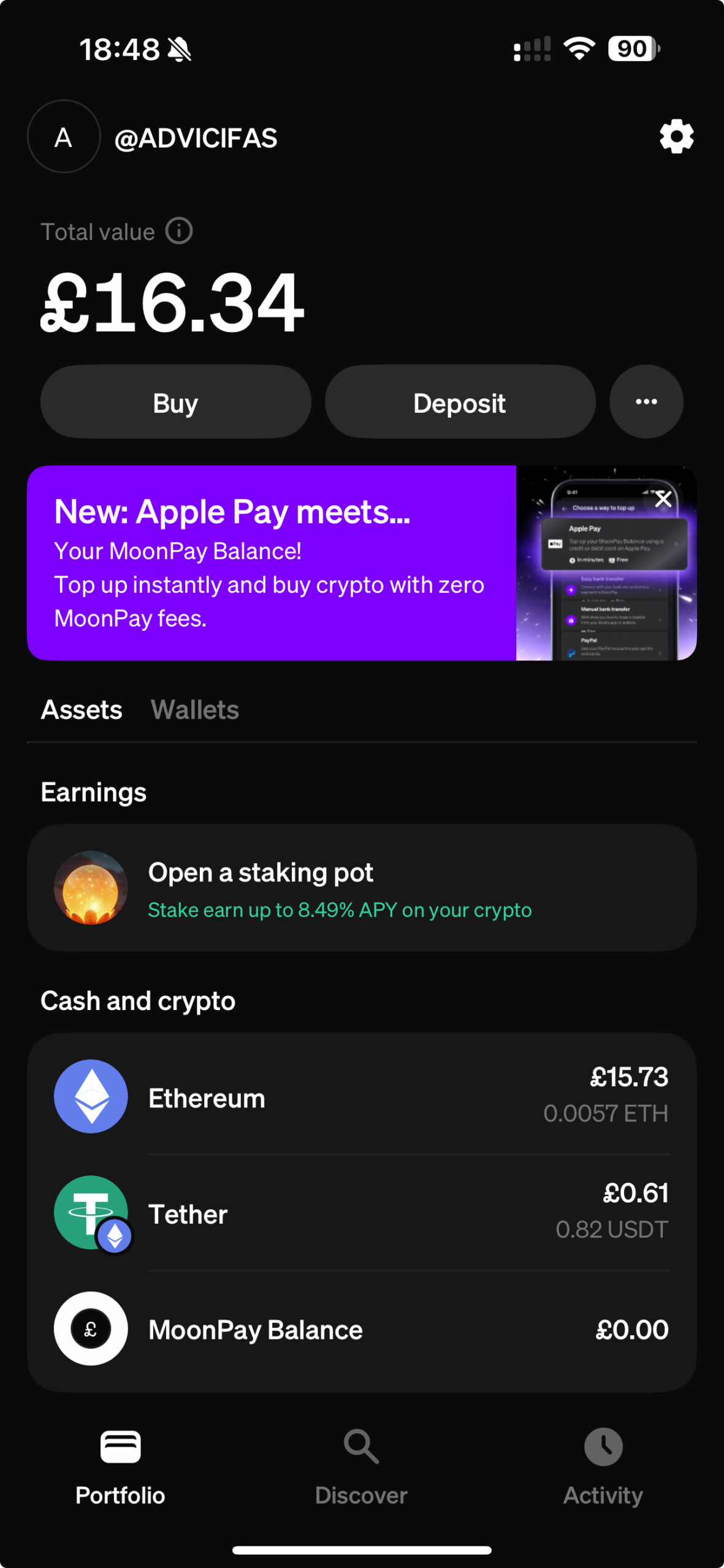You solely log in using MoonPay and purchase USDT (ERC-20) to the value in GBP of your service cost using Apple or Google Pay.