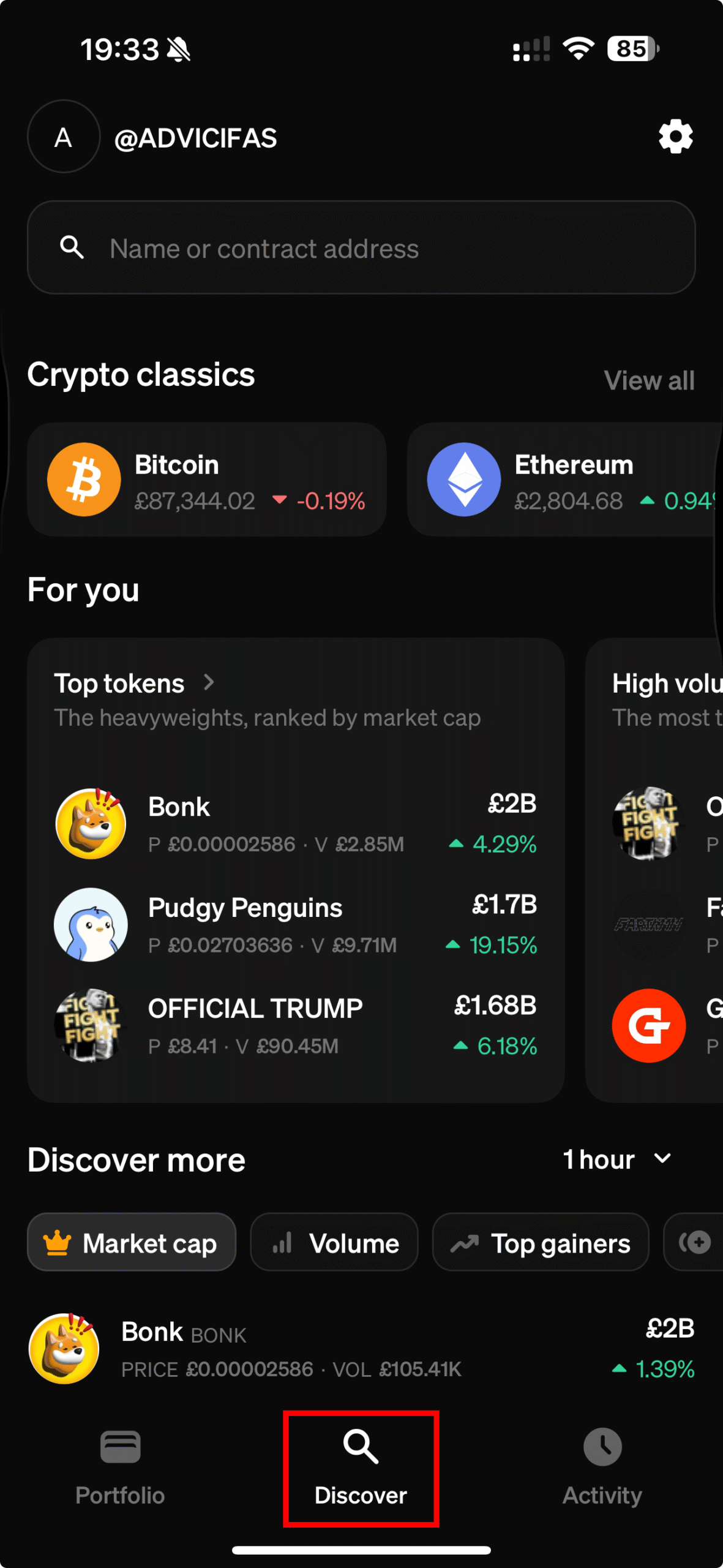If ‘Tether‘ is not listed in this section, or you cannot find it. Press ‘Discover‘ at the bottom of your screen.