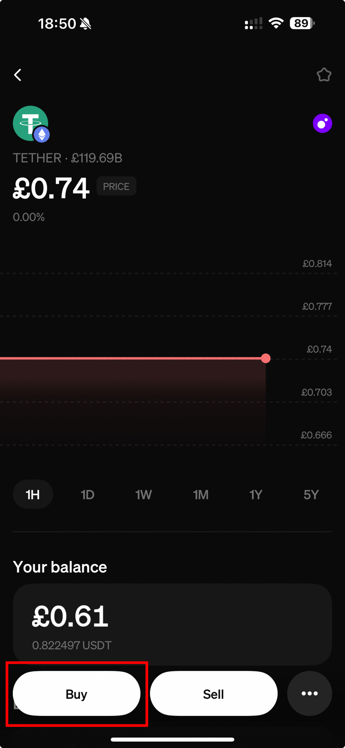 6. Once you’ve pressed ‘Tether‘, press the ‘Buy‘ button.