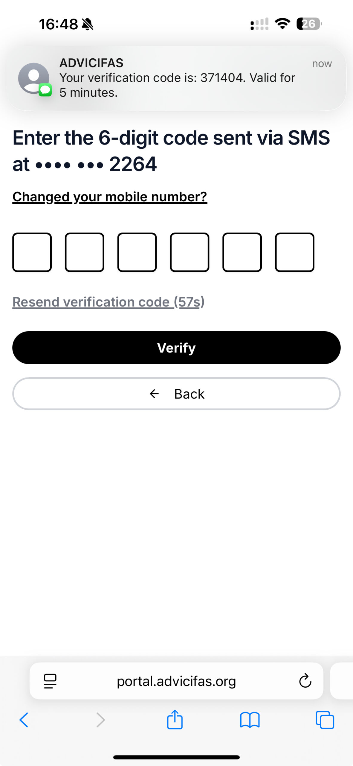3. Enter the 6-digit code as provided by your specialist in the field that displays.