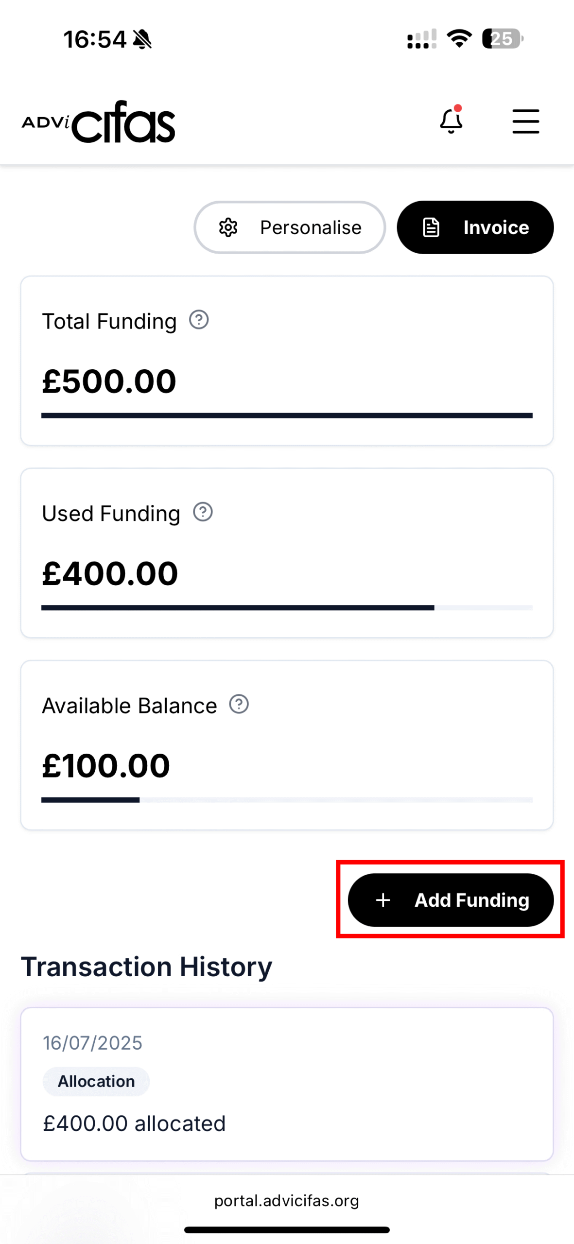 To add funding to your account (e.g. pay for a service), follow the below steps: