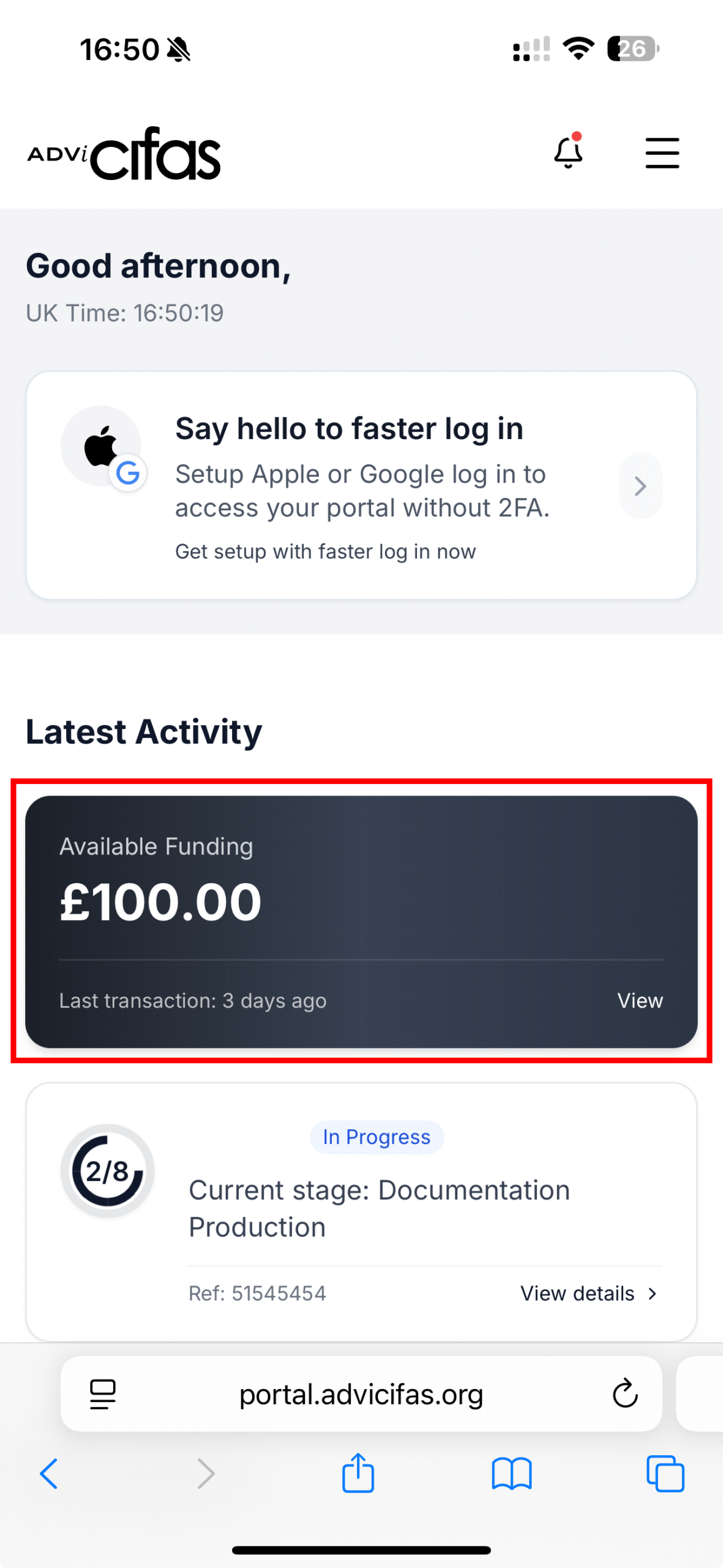 As per our processes, when you register for your portal and log in, you will have access to a suite of features. In these features includes direct account funding.