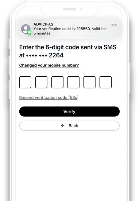 Mockup Smartphone image of the ADVICIFAS Client Portal Real-Time Notifications